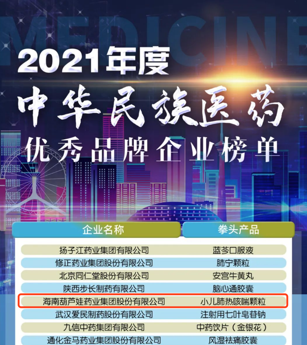 12月29日,全国工商联医药业商会发布了“2021年度中华民族医药优秀品牌企业榜单”,z6mg人生就是博药业集团凭借黄金单品小儿肺热咳喘颗粒(4克)实力登榜。